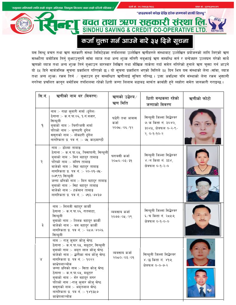 कर्जा चुक्ता गर्न आउने बारे ३५ दिने सूचना